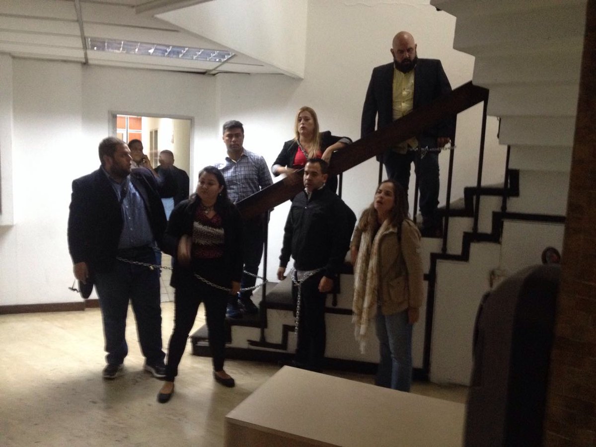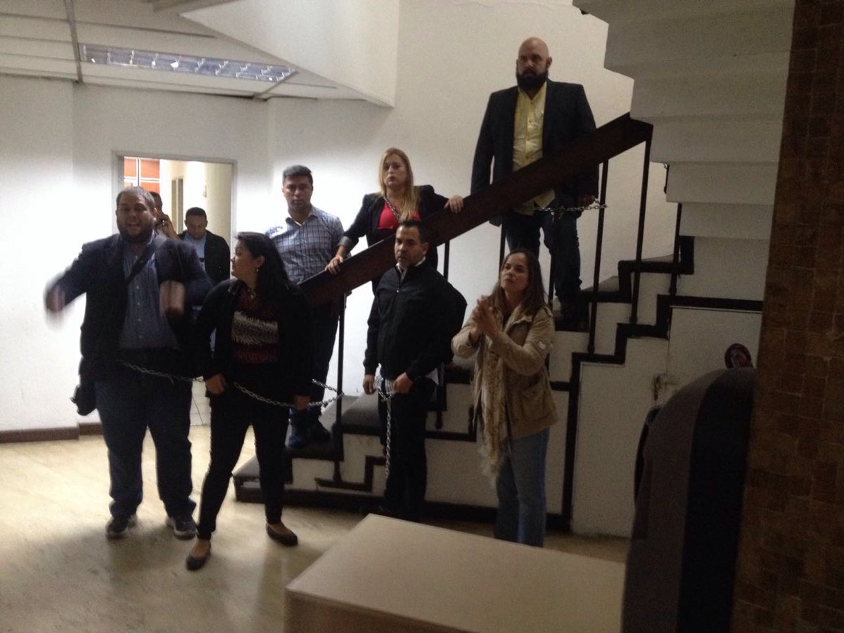 Diputados opositores gritan consignas encadenados en el CNE pic.twitter.com/pJQjccSy1o