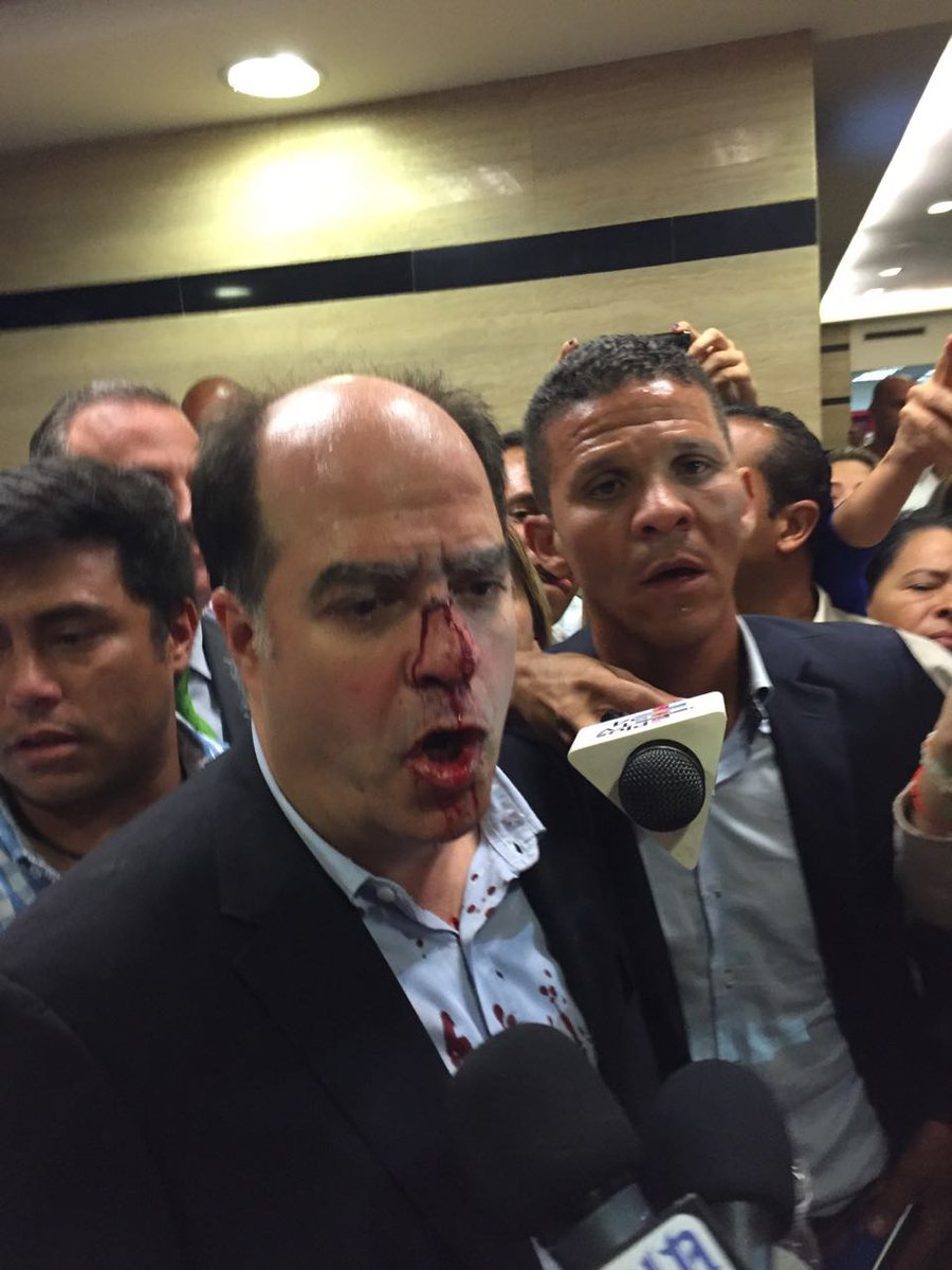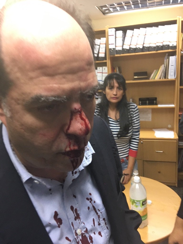 Julio Borges informó que el general Zavarce fue quien “dio la orden” que los opositores no podían ingresar al CNE, además acotó que el militar “dio la orden que nos empujaran contra los colectivos que nos golpearon con tubos, cascos de motos, lanzaron artefactos explosivos”.