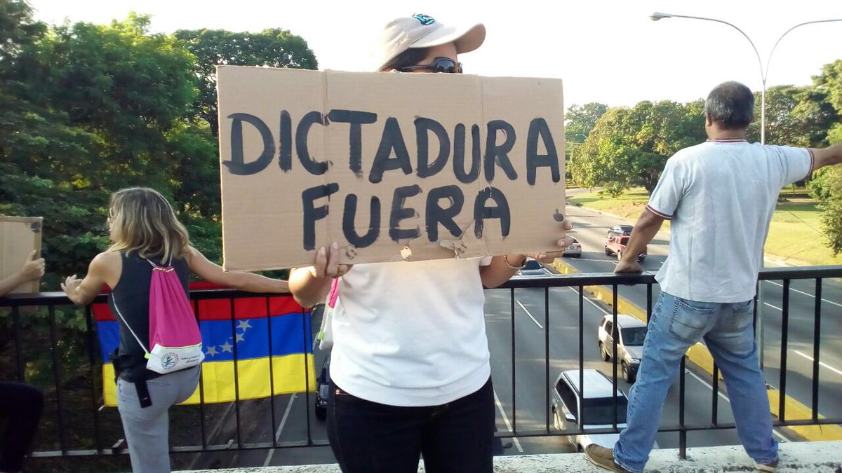 “Dictadura fuera”, mensajes como estos se leen en las pancartas que llevan los manifestantes | Foto: @AleReporta
