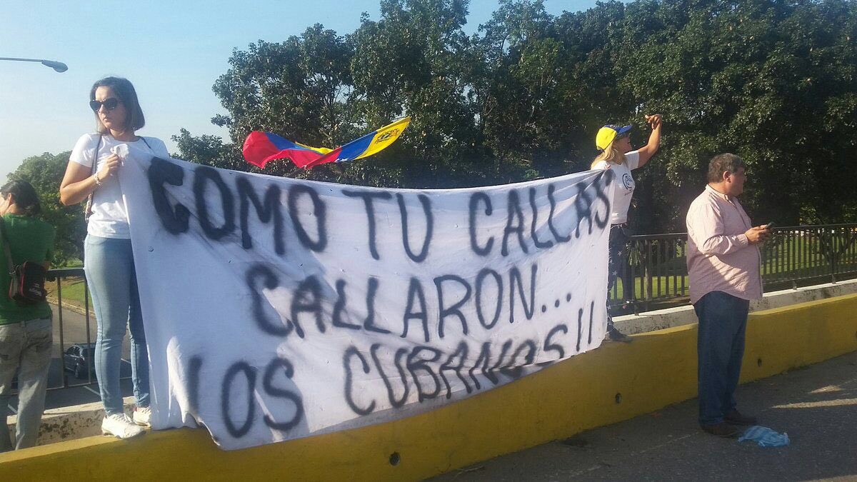 “Como tu callas callaron los cubanos”, “No te la cales más” y “Dictadura fuera” son algunos de los mensajes que se leen en las pancartas que portan los manifestantes.