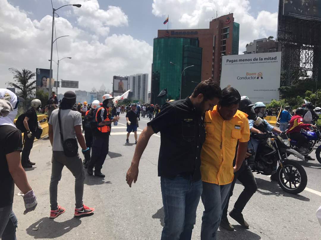 Efectivos de las fuerzas de seguridad del Estado hirieron con una metra en una pierna, al diputado de Primero Justicia, Carlos Paparoni.