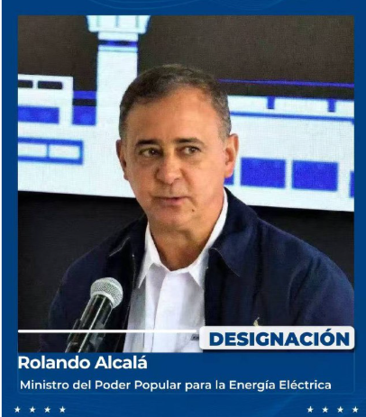 «He designado como nuevo Ministro del Poder Popular para la Energía Eléctrica a Rolando Alcalá, ingeniero electricista de la Universidad Simón Bolívar y especialista de proyectos eléctricos con gran experiencia nacional e internacional», dice la publicación de Rodríguez en su canal de Telegram.