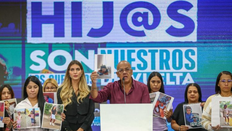 Este lunes, el Jefe del Comando Unificado de la Revolución Bolivariana, Jorge Rodríguez exigió, en nombre del Gobierno Bolivariano, y de las madres de los niños y niñas secuestradas por los Estados Unidos – EEUU, la devolución inmediata de los 18 menores de edad. Rodríguez se hizo acompañar de los familiares de los pequeños quienes reviven la misma historia que vivió Maikelys Espinoza.