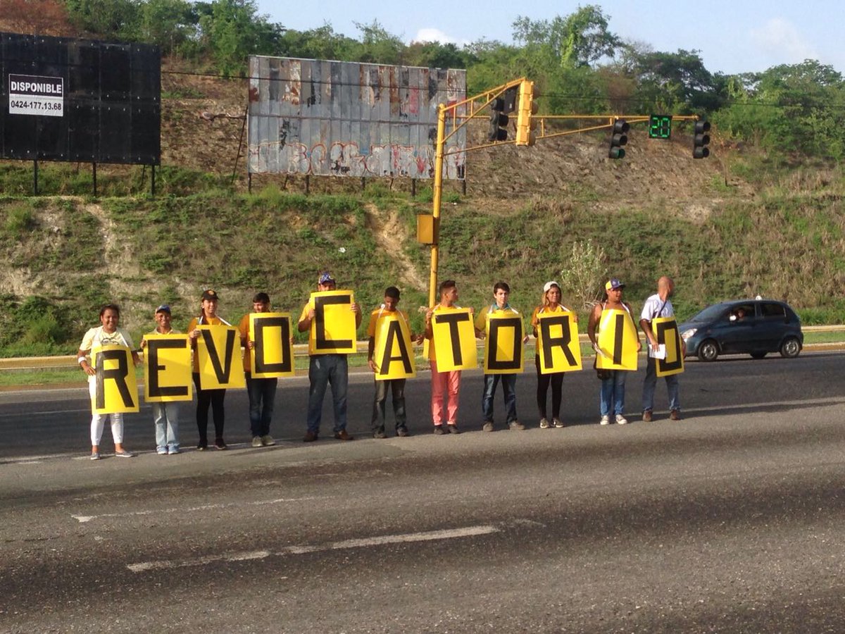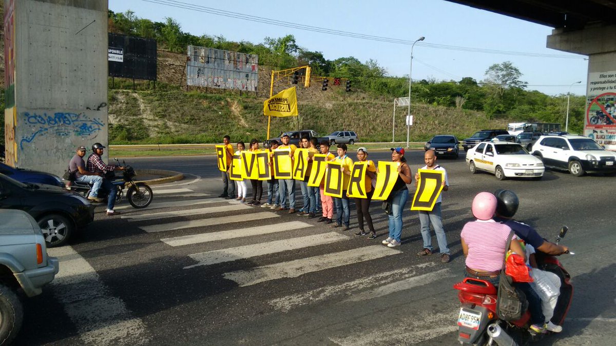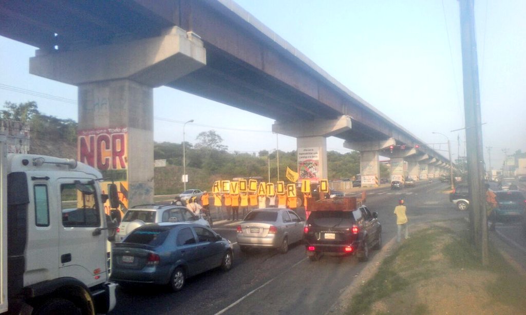 Jovenes activistas de Primero Justicia de Guarenas y Guatire trancaron las vías hoy exigiendo el referendo para revocar a Maduro.