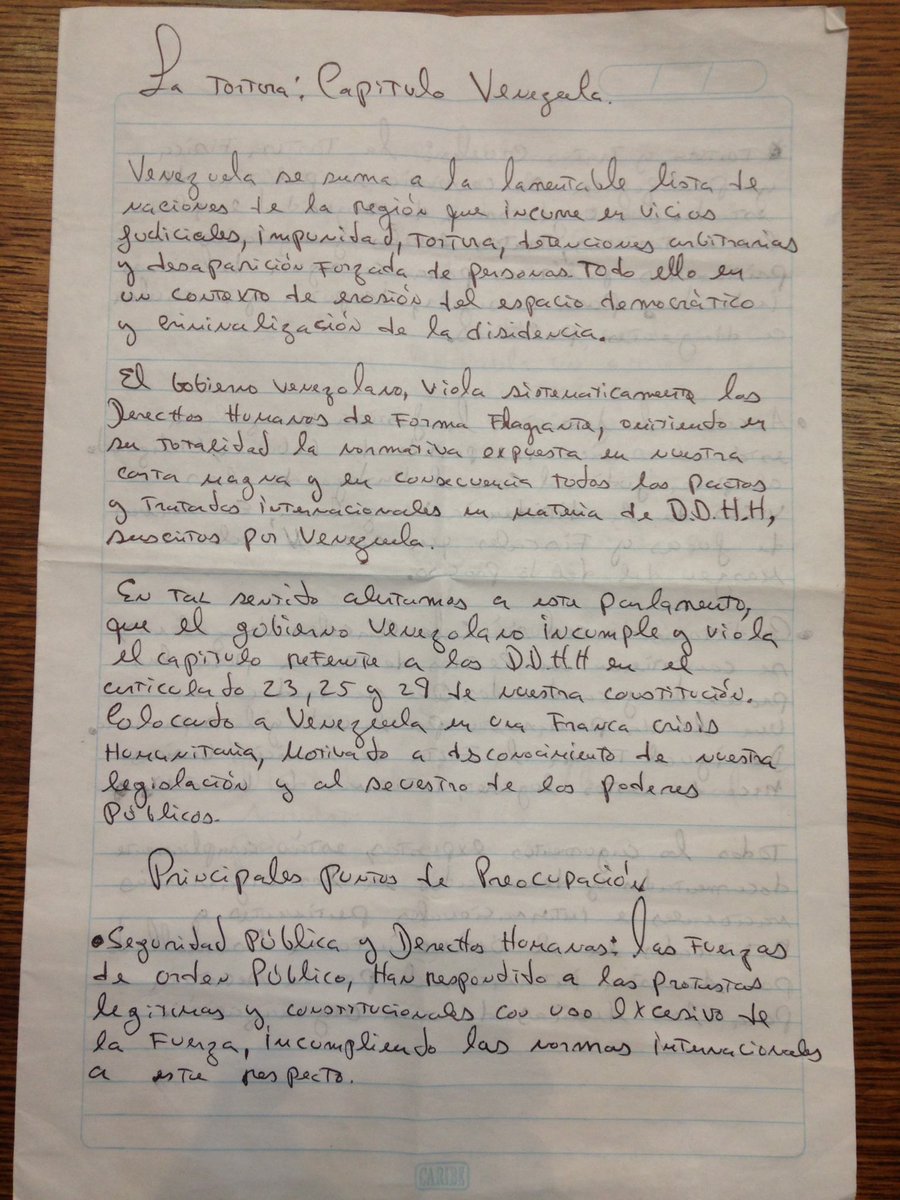 Entre sus primeras líneas se puede leer “Venezuela se suma a la lamentable lista de naciones de la región que incurre en vicios judiciales, impunidad, tortura, detenciones arbitrarias (…) el Gobierno viola sistemáticamente los derechos humanos”.