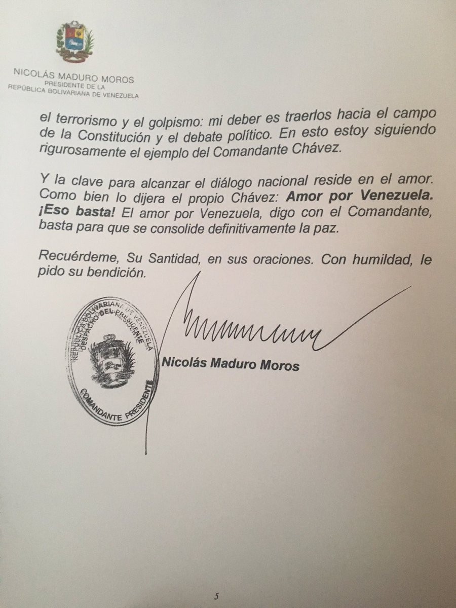La carta que envió Maduro al Papa Francisco