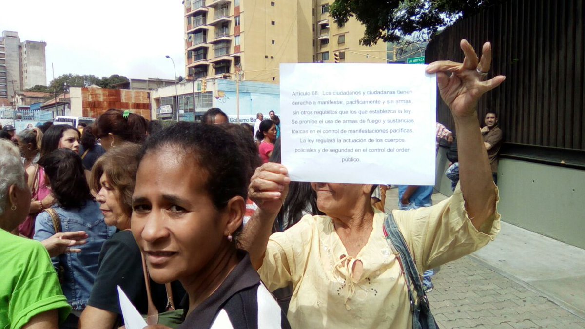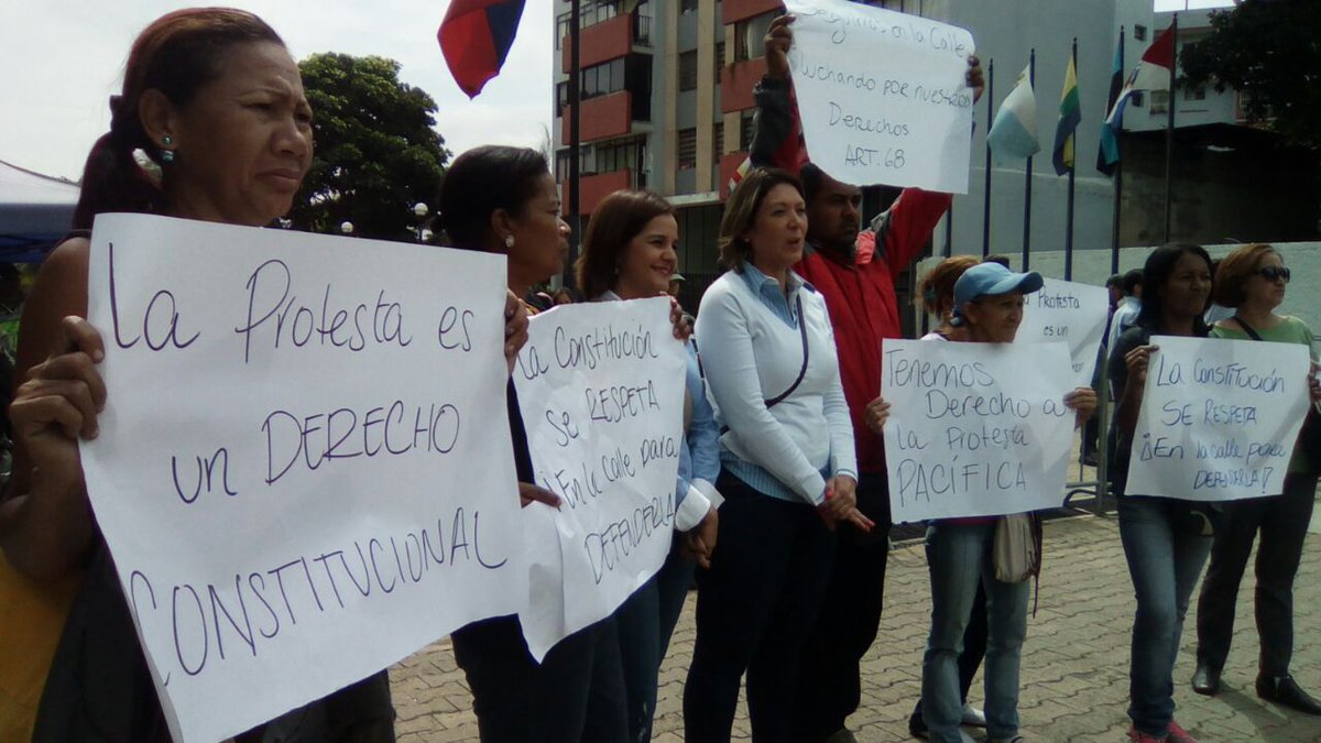 En el lugar, junto a una gran cantidad de manifestantes, se encuentran el representante de la Mesa de la Unidad Democrática (MUD) en la mesa de diálogo, Carlos Ocariz, y el diputado a la Asamblea Nacional (AN), Tomás Guanipa, quienes aseguran que “nadie puede quitarle el derecho a los venezolanos a protestar pacíficamente en defensa de sus derechos constitucionales”.