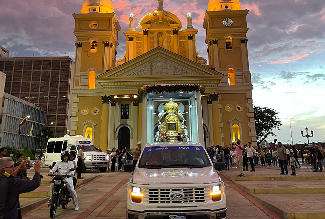 En el marco de la vigilia de Pentecostés, la imagen de la Virgen de Chiquinquireña realizó este sábado un recorrido por los municipios Maracaibo, San Francisco y Mara a bordo del nuevo «María móvil»