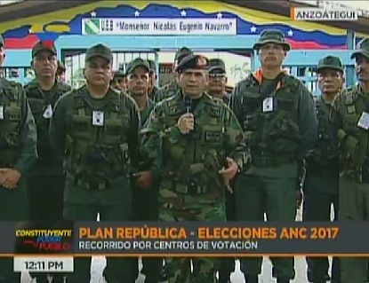 Integrantes de la Fuerza Armada Nacional Bolivariana (Fanb) recorren este domingo varios de los centros de votación en el país de cara a la Constituyente cubana que el Gobierno de Nicolás Maduro pretende imponer.
