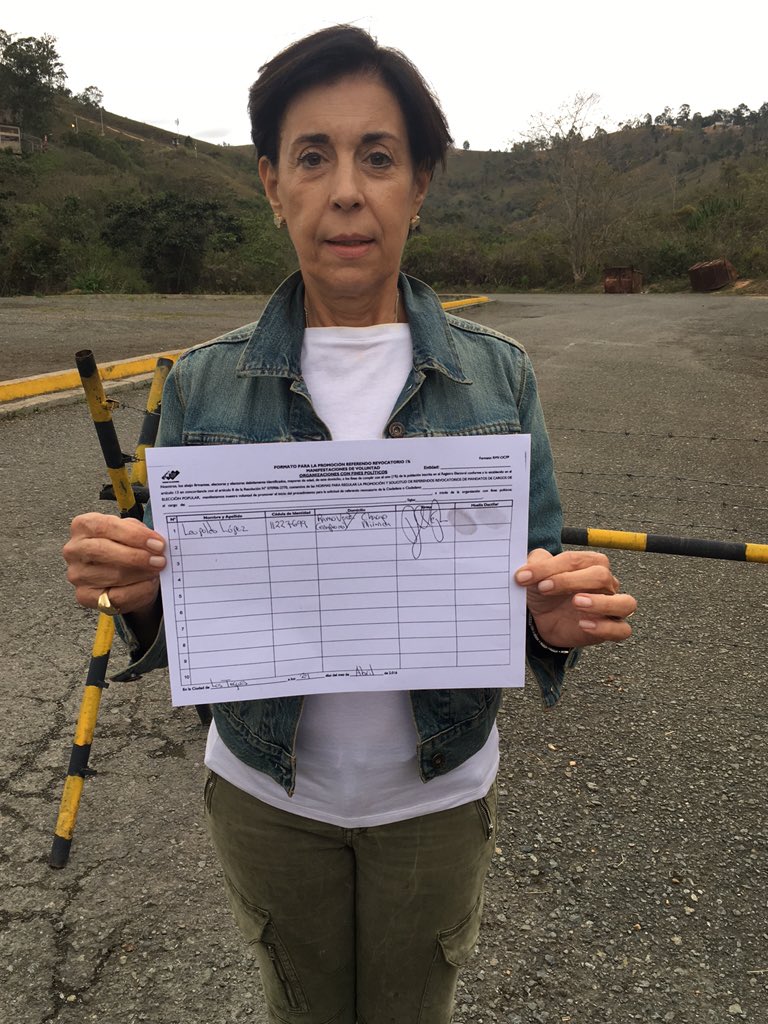 La madre de Leopoldo López mostró la planilla que firmó el dirigente de Voluntad Popular para pedir el revocatorio.