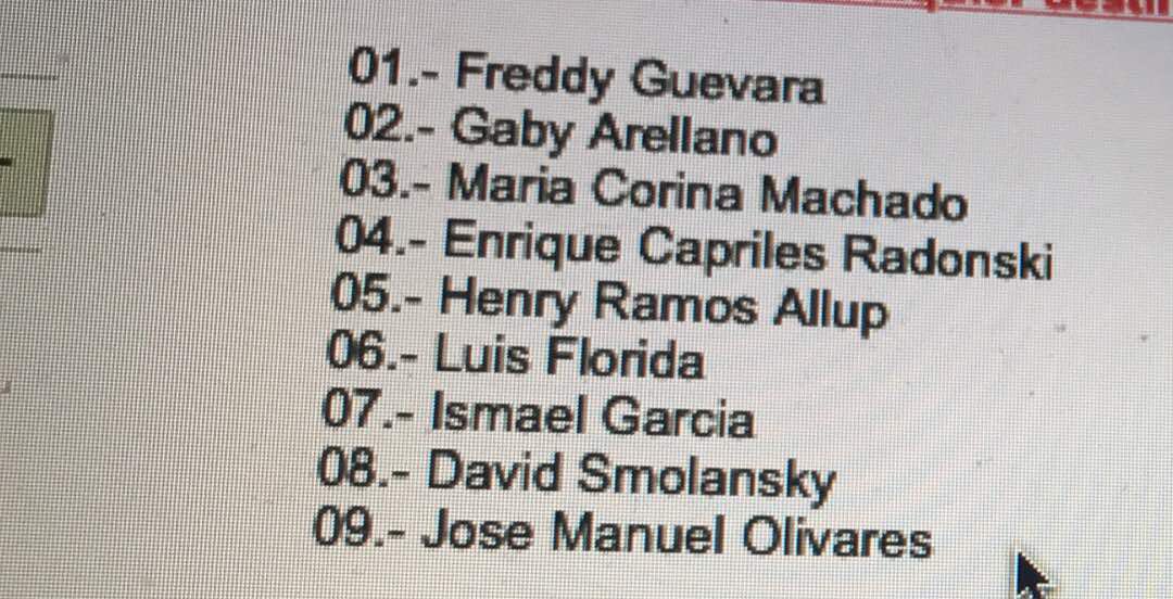 En la lista publicada por el dirigente, en donde él se encuentra, también se mencionan: el vicepresidente de la AN Freddy Guevara; la coordinadora nacional de Vente Venezuela María Corina Machado; la diputada Gabriela Arellano; el gobernador del estado Miranda Henrique Capriles; el diputado Luis Florido; el diputado Ismael García; el alcalde de El Hatillo David Smolansky; y el diputado José Manuel Olivares.