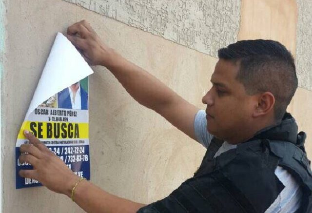 Como lo habían anunciado este jueves un grupo de efectivos del Cuerpo de Investigaciones Científicas Penales y Criminalísticas (Cicpc), fijó carteles en Zulia Caracas con el rostro del piloto Óscar Pérez, también conocido como el “hombre del helicóptero”.