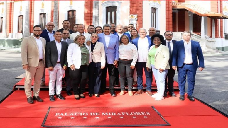 Acompañado de la primera dama de la República, Cilia Flores, el mandatario nacional dio la bienvenida a cada gobernador y gobernadora junto a alcaldes y alcaldesas de su estado, tanto del Gran Polo Patriótico como de los partidos de la oposición democrática que decidieron participar en las elecciones y así obtener el voto del pueblo venezolano.