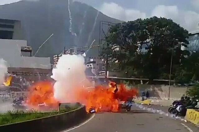 «En horas de la tarde grupos terroristas de ultraderecha atentaron contra la vida de efectivos motorizados GNB en Distribuidor Altamira», escribió el ministro mediante su usuario en la red social Twitter, @NestorReverol.
