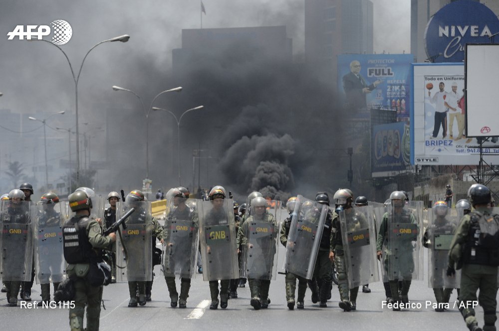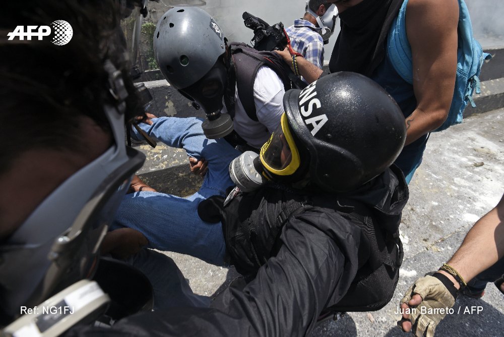 .@jbarreto1974 y @federicoparra cubren choques entre policías y manifestantes en Caracas, donde la prensa también necesita asistencia #AFP pic.twitter.com/b73oBIhURG