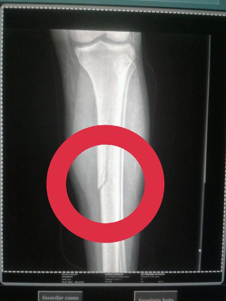 Al ser atendido en Salud Chacao le hicieron una placa en donde le diagnosticaron fractura en la tibia. Minutos más tarde fue trasladado a un centro de salud privado ubicado en el este de Caracas.