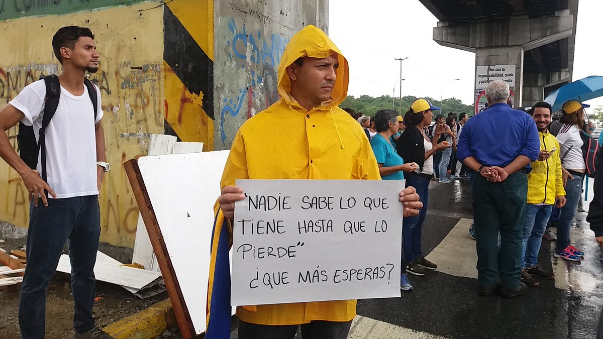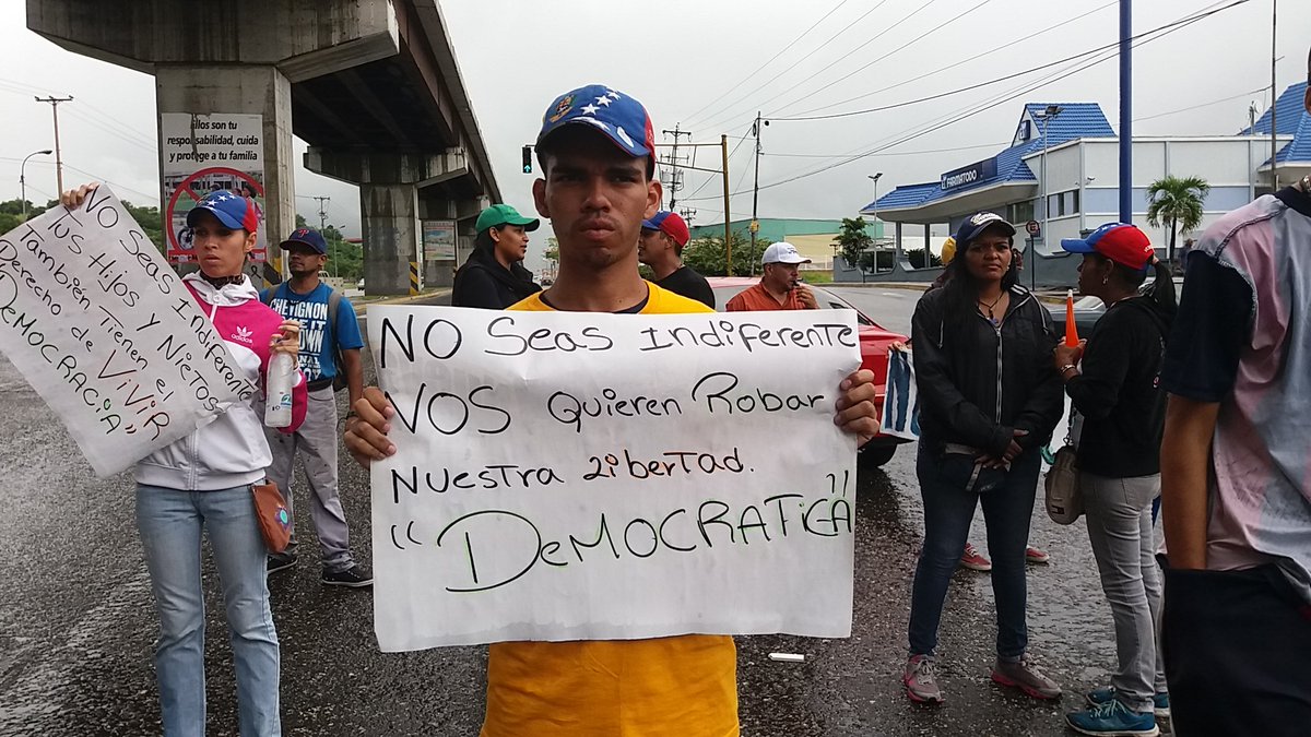 Hemos cumplido 2 horas del #TrancazoNacional en #Guarenas. ¡Ni la lluvia nos mueve de aquí! #NoAlFraudeConstituyente pic.twitter.com/24XkY2MALr