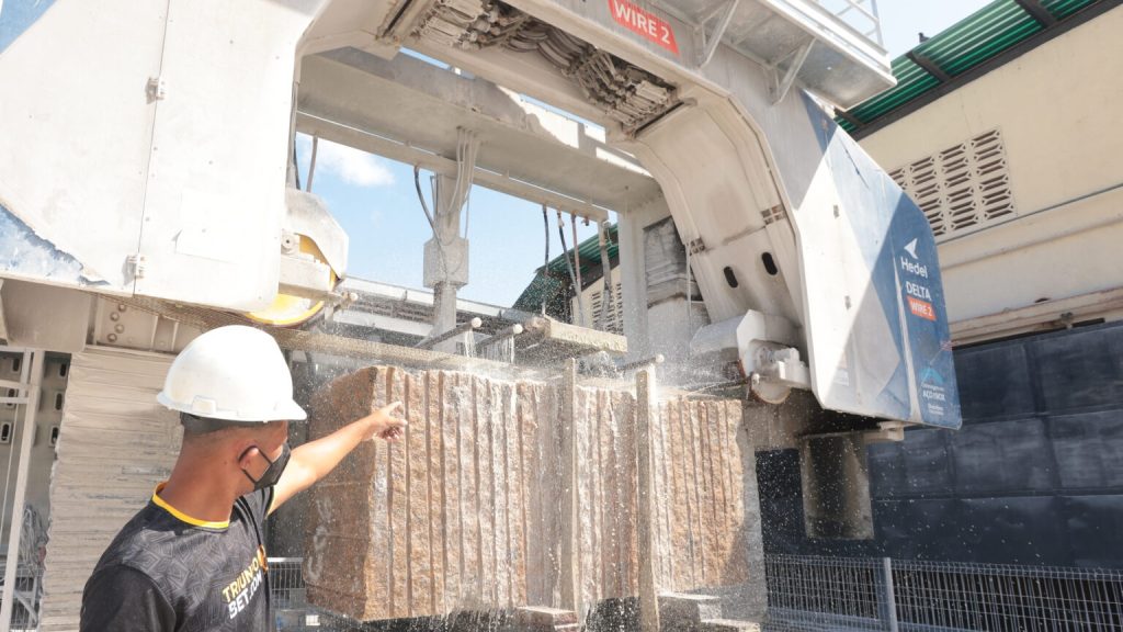 El proceso industrial abarca desde la selección en canteras y el corte con tecnología multihilo hasta el pulido final, transformando grandes bloques en topes de cocina y losas decorativas de alta calidad.