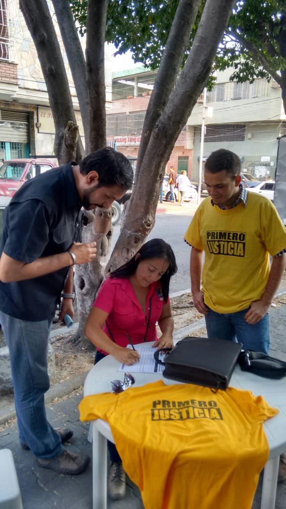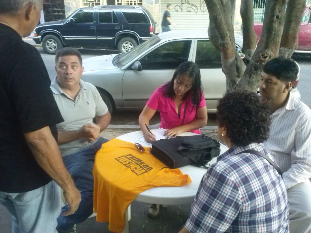 Los concejales Ninoska Urbaez y Silfredo Rubino acompañan a los jóvenes justicieros en la recolección de firmas.