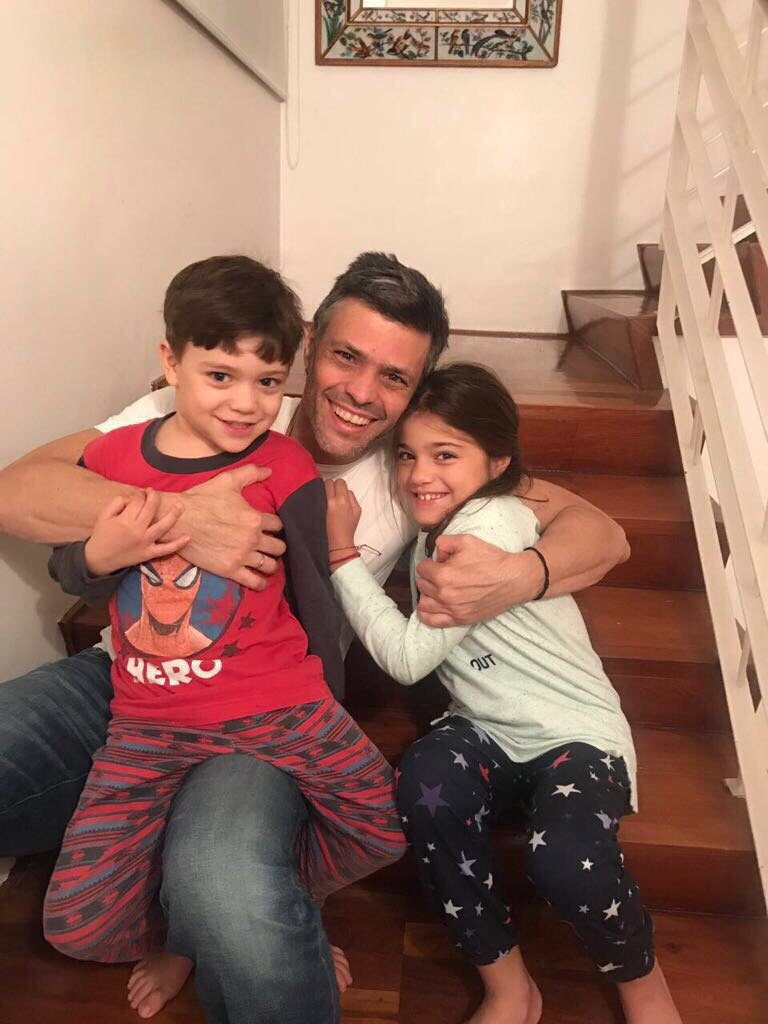 Horas después que se conociera la noticia que Leopoldo López recibió la medida de arresto domiciliario, se divulgó la primera imagen junto a sus hijos.