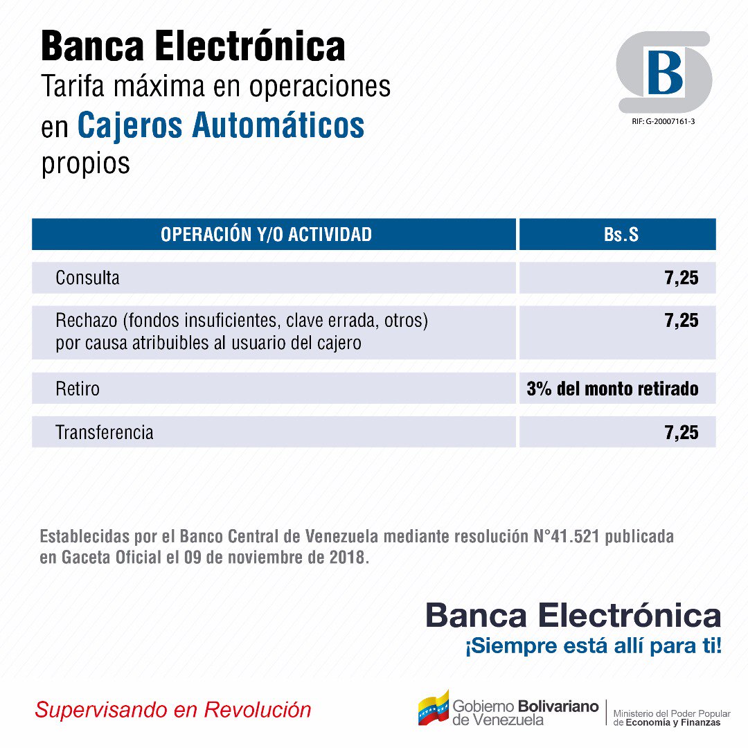 La Superintendencia de las Instituciones del Sector Bancario (Sudeban) informó sobre las nuevas tarifas para el uso de los cajeros automáticos. El organismo informó los montos por concepto de transferencia, retiro, consulta y rechazo.
