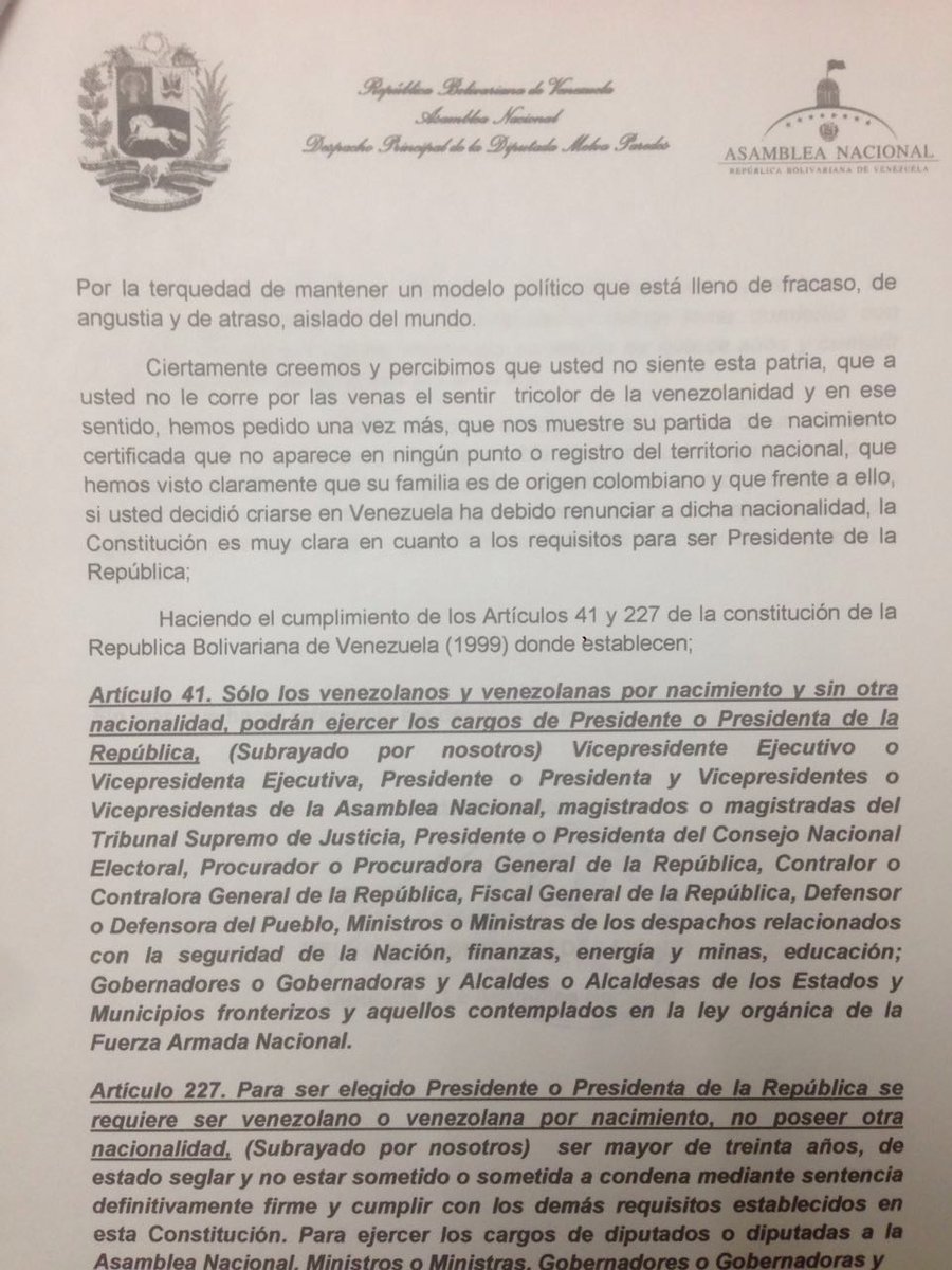 Aquí les dejo la carta consignada al Ciudadano .@NicolasMaduro muestre su PDN o #DecretoGramckoYA pic.twitter.com/U4cvX6sDQQ