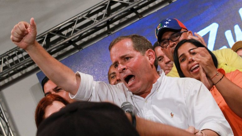El líder opositor venció en la contienda a la candidata por Un Nuevo Tiempo, Eveling Trejo de Rosales.