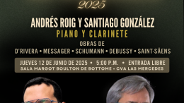 El jueves 12 de junio de 2025 a las 5:00 p.m., el clarinetista Santiago González y el pianista Andrés Roig ofrecerán un recital en la…