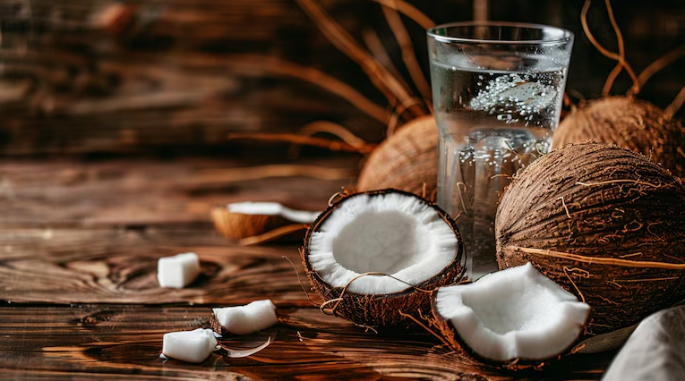 6. Hidratación y mejora del rendimiento: El agua de coco es rica en electrolitos naturales, lo que ayuda a mantener la hidratación, especialmente después del ejercicio. Una buena hidratación favorece la función metabólica y ayuda a controlar el apetito.