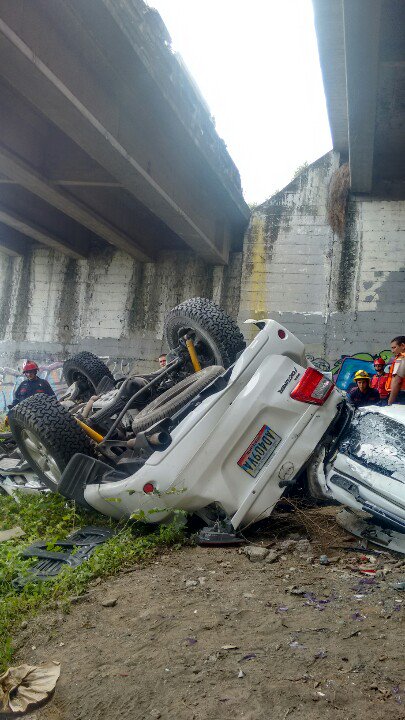 La tarde de este martes ocurrió un aparatoso accidente en la Av. Boyaca, en la Gran Caracas, que dejó un muerto. Una camioneta cayó al vacío desde el puente del distribuidor Altamira.