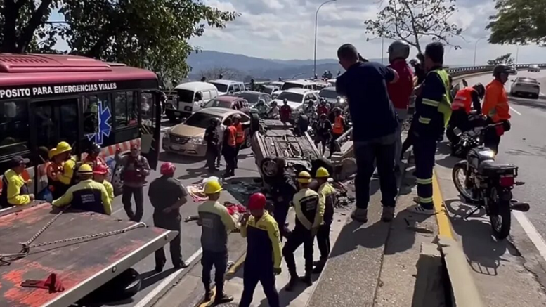 El siniestro se registró a la altura del Distribuidor Altamira, en el municipio Chacao del estado Miranda, cuando el sedán en el que viajaban cinco personas impactó contra un muro de contención y posteriormente volcó.