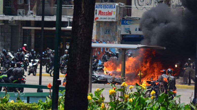 El reportero gráfico, Daniel Blanco, informó que un artefacto explosivo fue detonado en Altamira, ocasionando la quema de varias motos de efectivos de la Policía Nacional Bolivariana (PNB) y un número no confirmado aún de uniformados heridos.