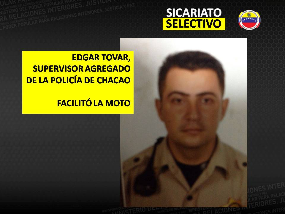 Tovar estaría sindicado de haber facilitado la motocicleta en la que fue cometido el crimen. El vehículo pertenece al cuerpo policial de Chacao.