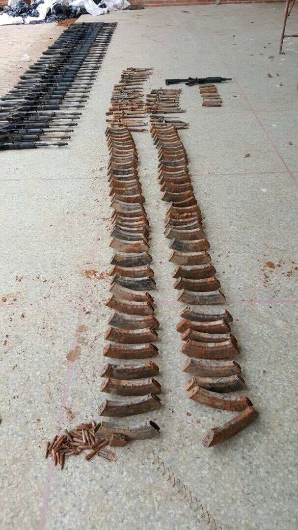 Tras un allanamiento ejecutado este lunes en un terreno enmontado donde está una obra de construcción paralizada, ubicada en la avenida Aranzazu con Enrique Tejera de Valencia, específicamente en las adyacencias del Mercado Periférico, fueron localizados 45 fusiles AK 103 y municiones sustraídos de la 41 Brigada Blindada, en el Fuerte Paramacay. Hecho ocurrido el domingo 6 de agosto.