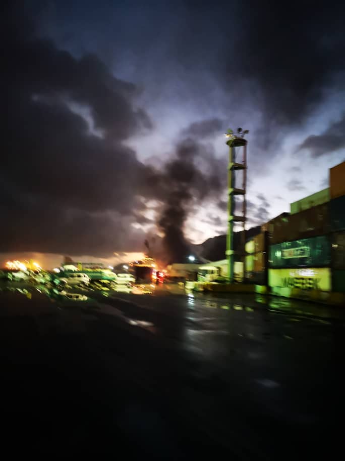 El galpón afectado sería en el que se almacenan las cajas CLAP.Bomberos Marinos y de Vargas acudieron a sofocar las llamas con más de seis cisternas. #PuertoLaGuaira #Vargas pic.twitter.com/HXhtAiFrYS