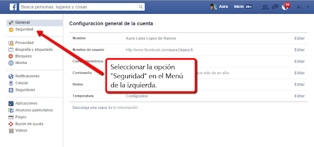 Luego hay que ir a la sección Seguridad en el menú que aparece en el lado izquierdo de la pantalla.