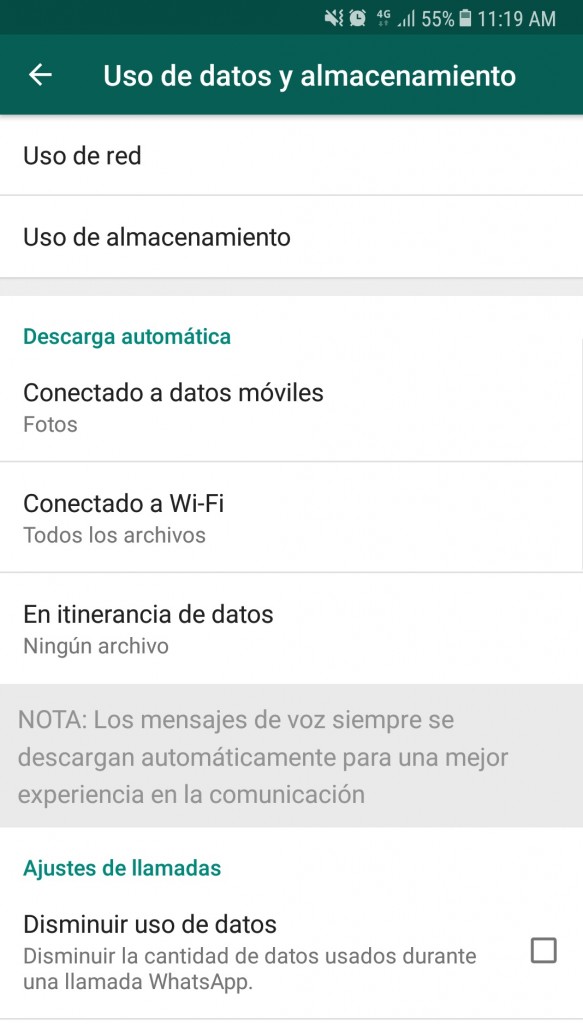 De todos modos, también es posible eliminar todas las descargas que se hagan al celular, tanto desde este servicio de mensajería como de otro modo, ingresando a la configuración general del móvil.